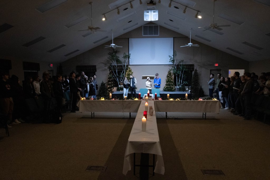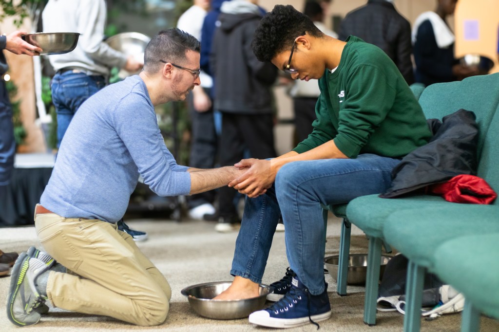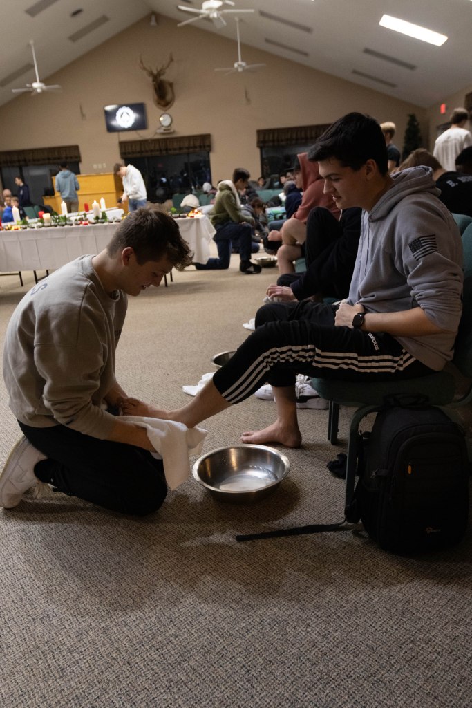 Friday evening, we had communion together as a school. For foot washing, the girls and guys separated, the girls went to the cafeteria and the guys stayed in the auditorium. It truly was beautiful to see so many kids coming together with each other and with God. After the foot washing, we reconvened in the auditorium. There, Pastor Jeff told us to quietly think about the sacrifice Jesus had made for us as we ate the bread and drank the grape juice.